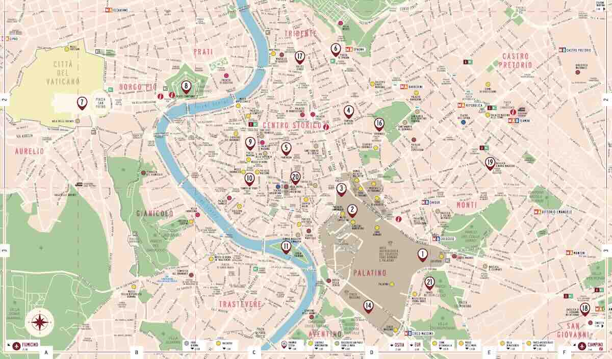Haga click sobre las flechas para desplazarte por el mapa del centro de Roma y hallar sobre el plano los monumentos más importantes de Roma en su callejero :