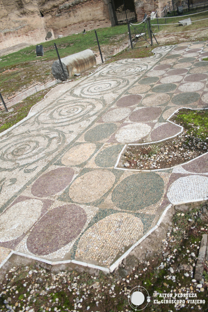 El edificio central de las termas de Caracalla era de mayor tamaño que la Basílica de San Pedro, recubierto en toda su longitud de oro y mármol, los pisos estaba revestidos con pequeños mosaicos incrustados en formas geométricas.